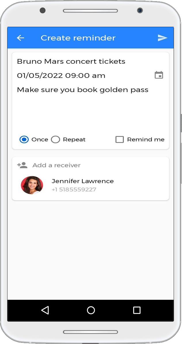 With RemindUs, create a reminder for friends, family, meeting, event or anything worth remembering.